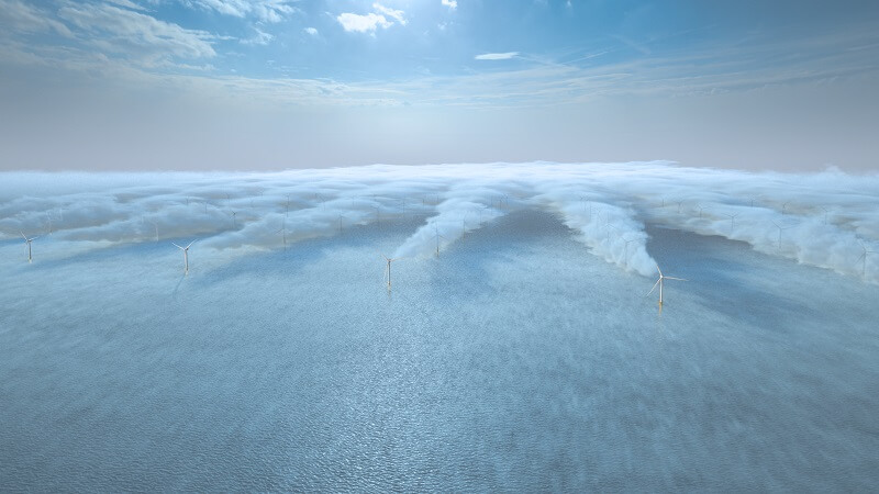 Comme l’écrit Nils Christiansen (2022) : « En d’autres termes, le mélange turbulent de la surface de l’eau provoqué par le cisaillement du vent est réduit à des dizaines de kilomètres autour du parc éolien. L’eau est généralement stratifiée, ainsi une couche d’eau plus chaude peut se trouver au-dessus d’une couche d’eau froide. Les parcs éoliens perturbent cette stratification naturelle. En raison du mélange réduit, une stratification stabilisée de l’eau est favorisée. Ce phénomène a été particulièrement marqué lors de la baisse de la stratification estivale. La stratification naturelle de l’eau est particulièrement importante en été et diminue vers l’automne. Dans la zone des parcs éoliens, cependant, une stratification stabilisée en dehors de la variation saisonnière a été mesurée. »